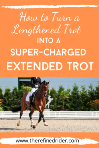 You might be thinking that the extended trot (or medium), is hard. Well, the good news is, it is not hard at all. It’s actually quite easy. The extended trot itself should take very little effort from the rider. However, it is the preparation for the extended trot that requires some hard work and a little know-how.