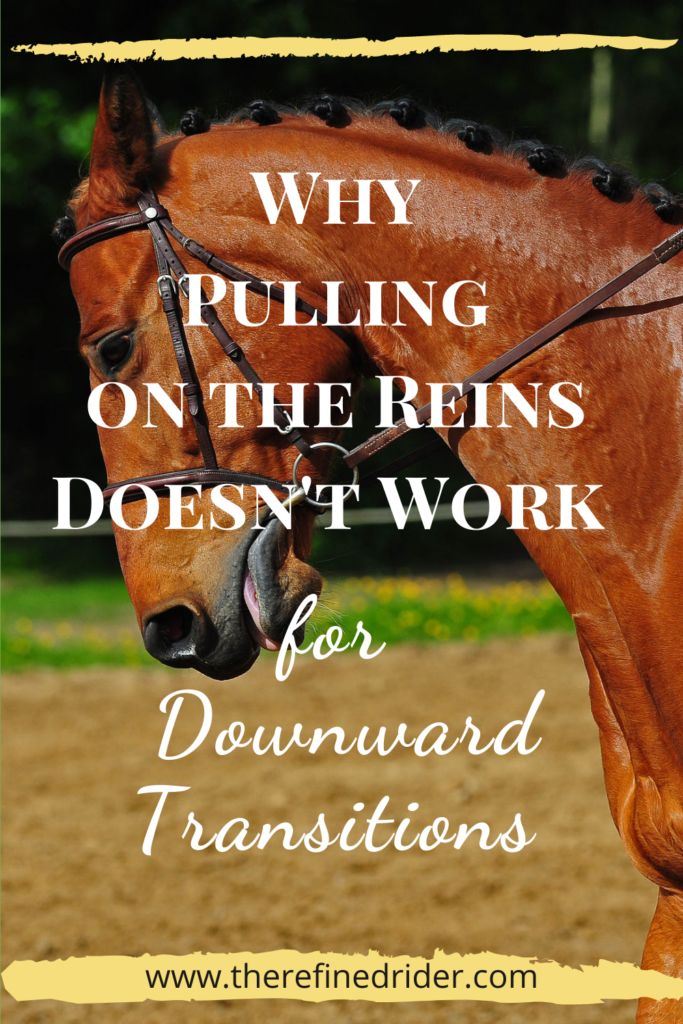 You’ve probably heard your trainer say it a thousand times, that you should not pull on the reins to transition down. You know that pulling on the reins is bad, and you know that you shouldn’t do it. But you think, “My horse is different, he just won’t stop!!!!!!!!